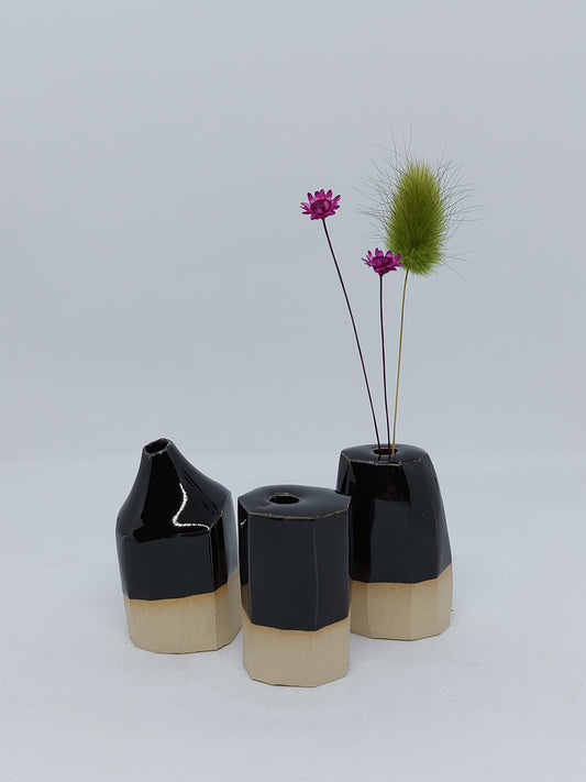 Mini vazice (komplet treh) - črna glina